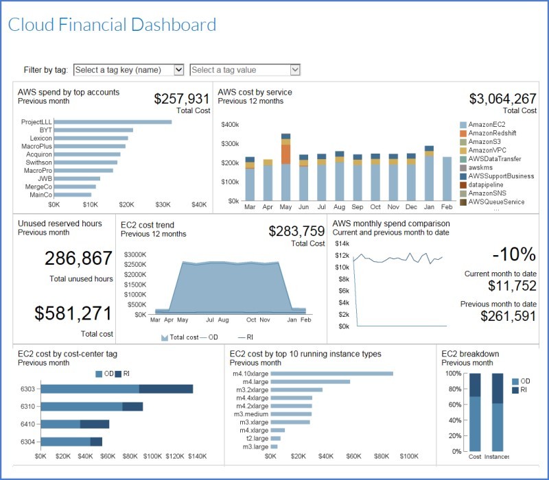 Figure 2: SAM Tool Financial Dashboard Showing Enterprise-wide Amazon Web Services Costs