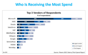 But things have changed. According to Flexera’s 2021 State of Tech Spend Report, Salesforce, ServiceNow, Google and Workday are among vendors receiving the most spend.