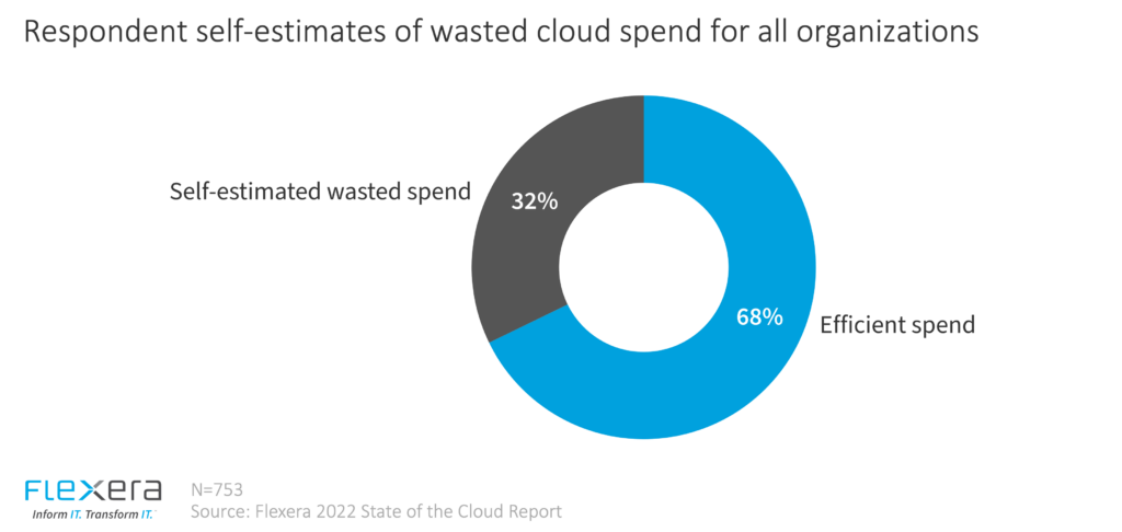 In recognition of International FinOps Day, we want to take this opportunity to make the topic of FinOps top-of-mind for those involved with their organization’s cloud journey. As Flexera’s State of the Cloud Report has shown year after year, IT professionals estimate that a significant portion of their cloud budget is wasted—this year the estimate is 32 percent, which is an increase from last year’s 30 percent, and the highest estimate we have seen in all the year’s of the State of the Cloud Report. Given this high level of waste, it’s not surprising the top cloud initiative in the State of the Cloud Report for six years running is optimizing existing use of cloud.